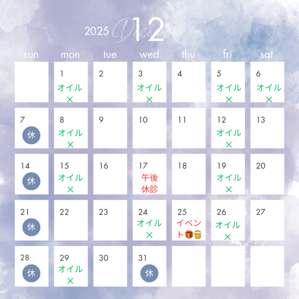 今月のオイルカレンダーとお知らせになります❣️